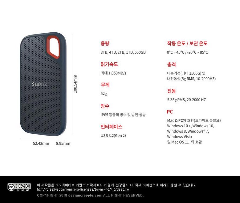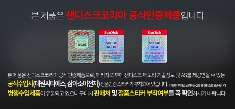| 제조국(원산지) | 말레이시아,중국,대만,태국 | 제조자(수입자) | 제조사:SanDisk, 수입자:샌디스크총판(삼아소이전자,대원CTS) |