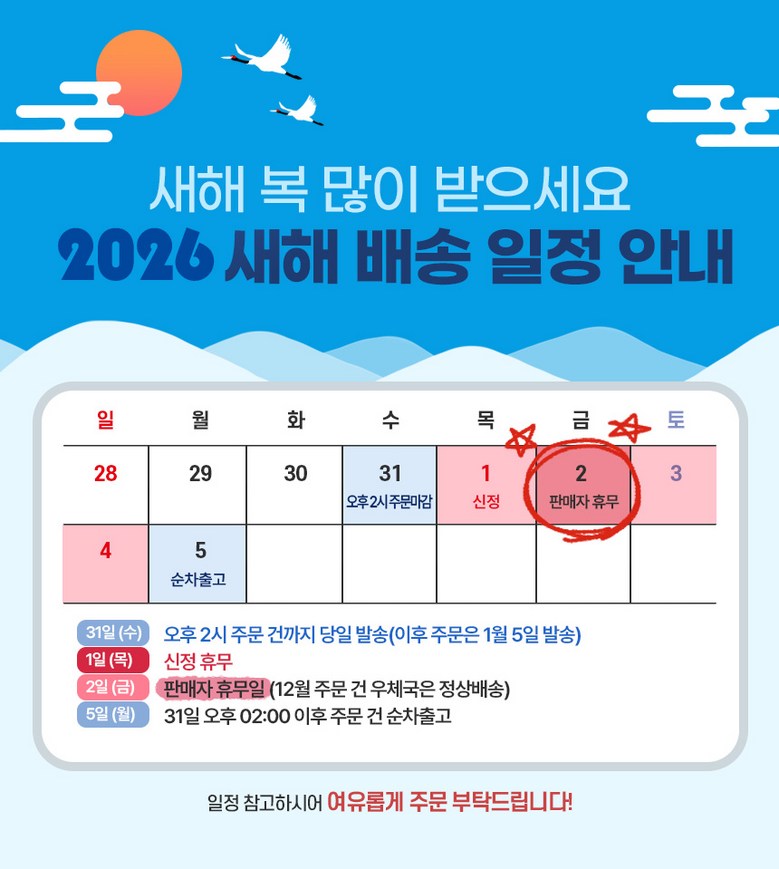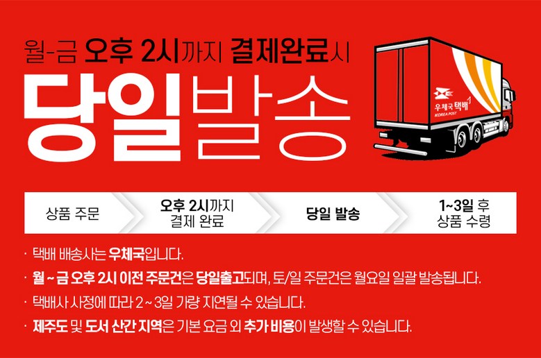 | 배송기간 | ㆍ도서산간 지역 등은 배송에 3-5일이 더 소요될 수 있습니다. - 천재지변, 물량 수급 변동 등 예외적인 사유 발생 시, 다소 지연될 수 있는 점 양해 부탁드립니다. | ||