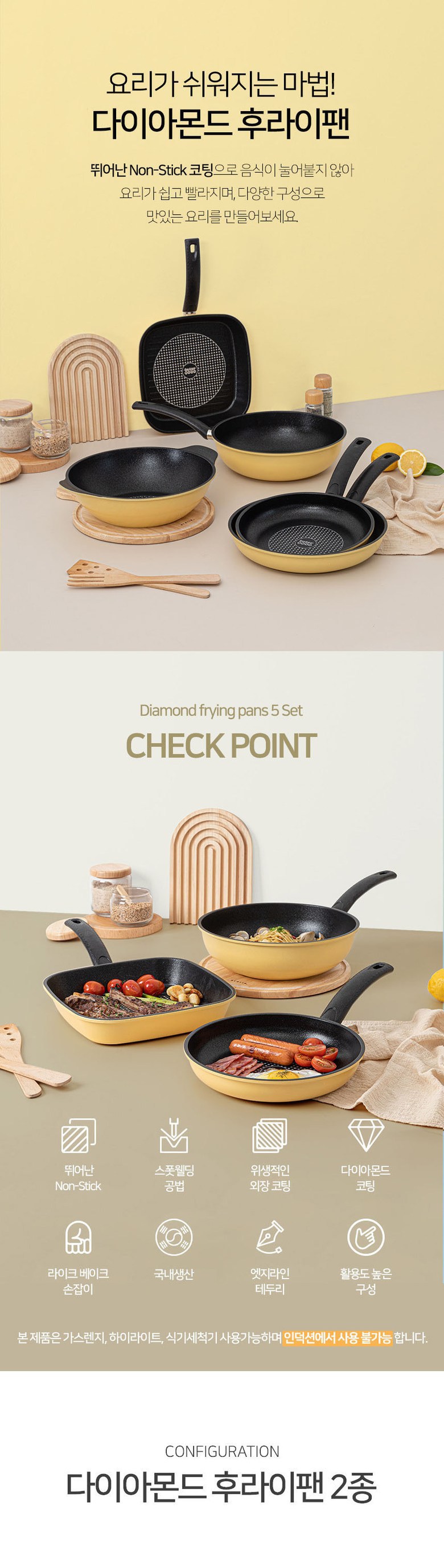 인터쿡 다이아 후라이팬 세트 2개