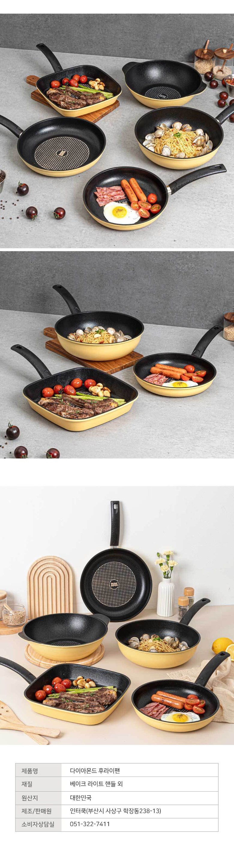 | 품명 및 모델명 | 인터쿡 다이아 | 재질 | 본체 - 알루미늄,내장코팅 -불소수지,외장코팅- 내열도료,뚜껑-강화유리,손잡이-베이크라이트 |
