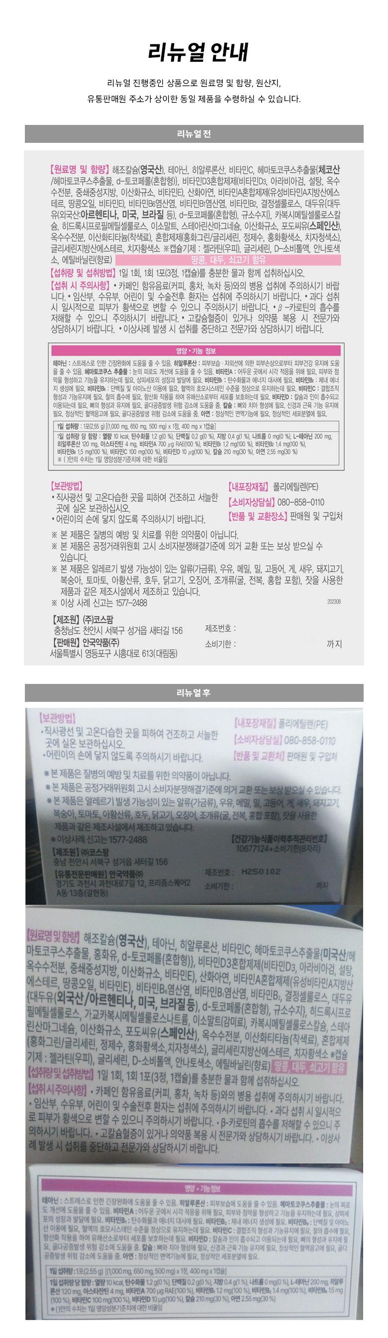 | 원료명 및 함량 | 컨텐츠 참조 | 영양정보 | 컨텐츠 참조 |