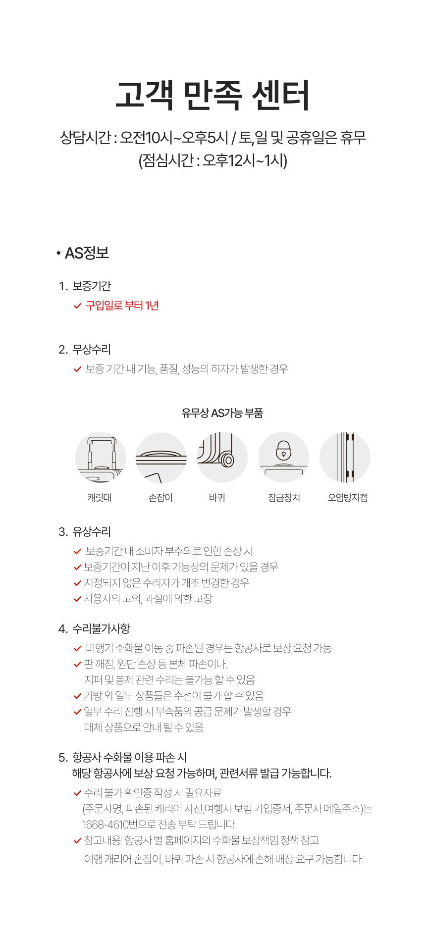 - ㆍ제조사의 사정 (신모델 출시 등) 및 부품 가격 변동 등에 의해 무료 교환/반품으로 요청하는 경우
