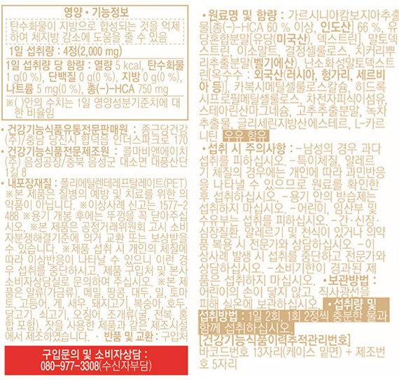 | 제품명 | 가르시니아 다이어트 에이치씨에이 HCA | 제조업소의 명칭과 소재지 | 컨텐츠 참조 |