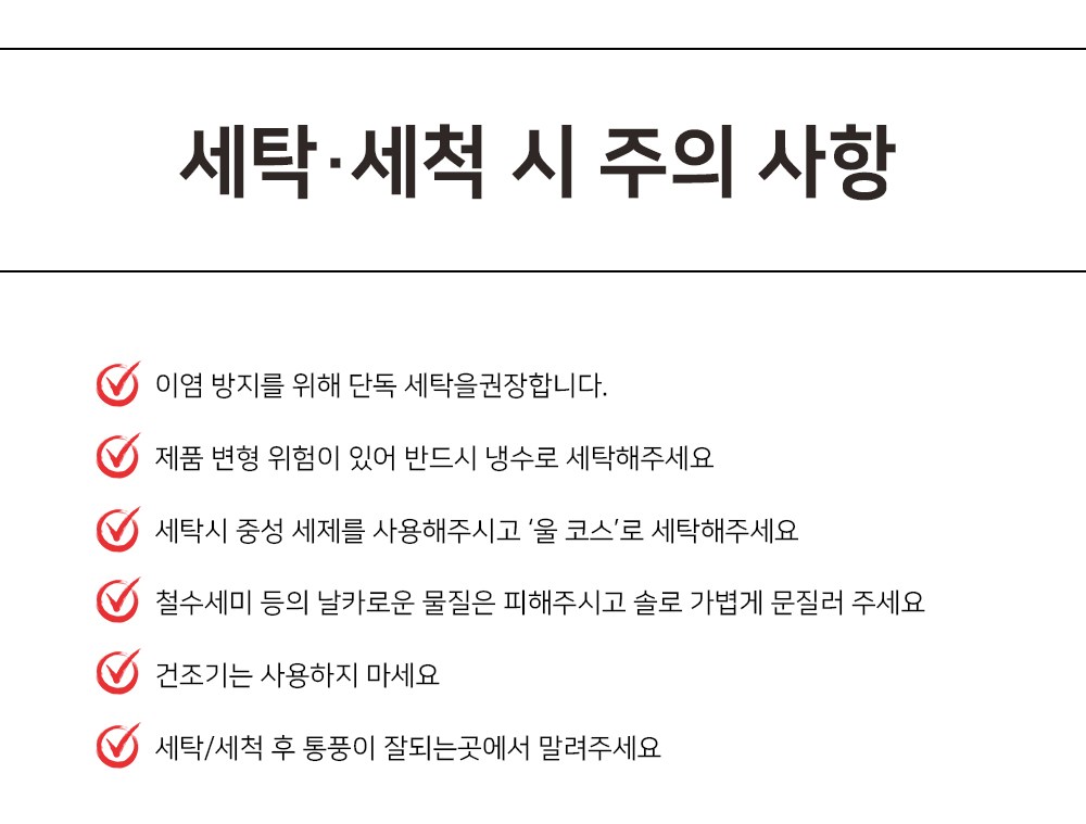 - 세탁방법: 세탁기사용가능