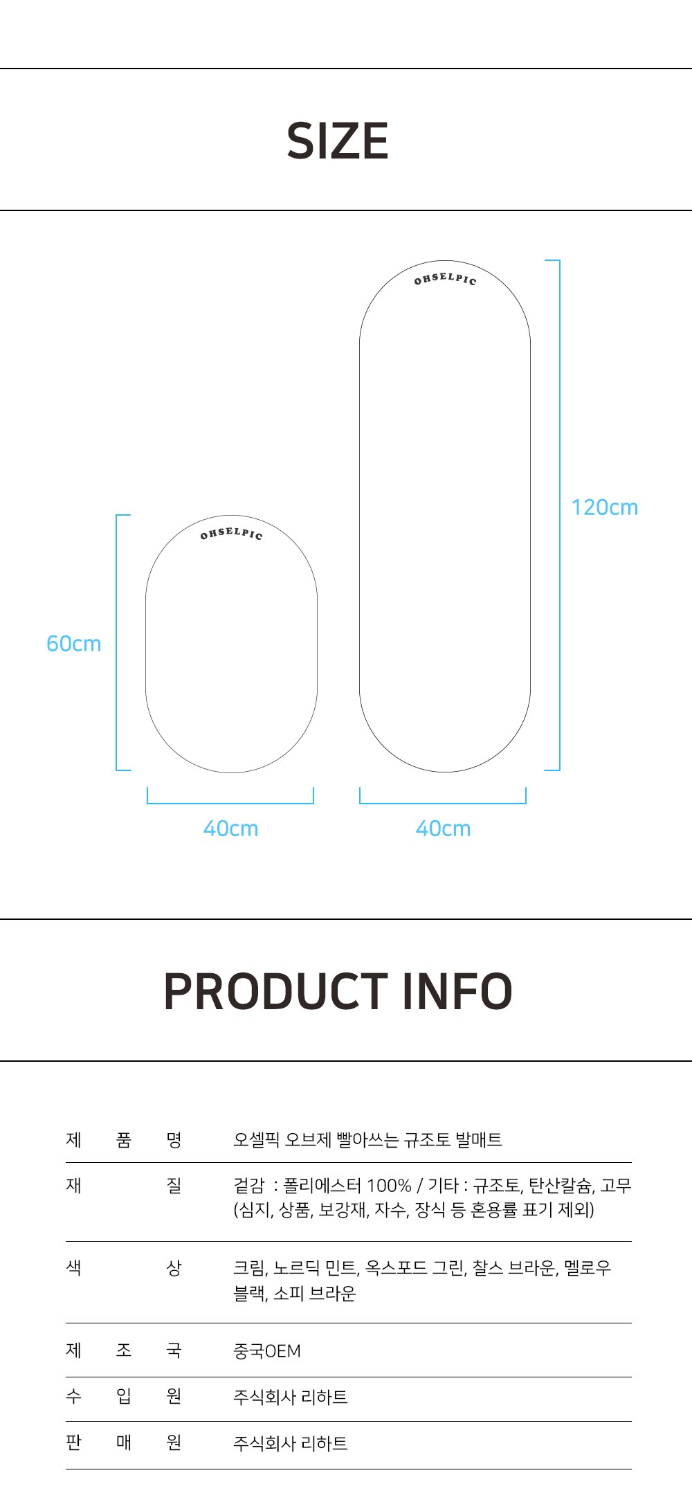 | 제조자(수입자) | (주)주식회사 리하트 | 제조국 | 중국OEM |