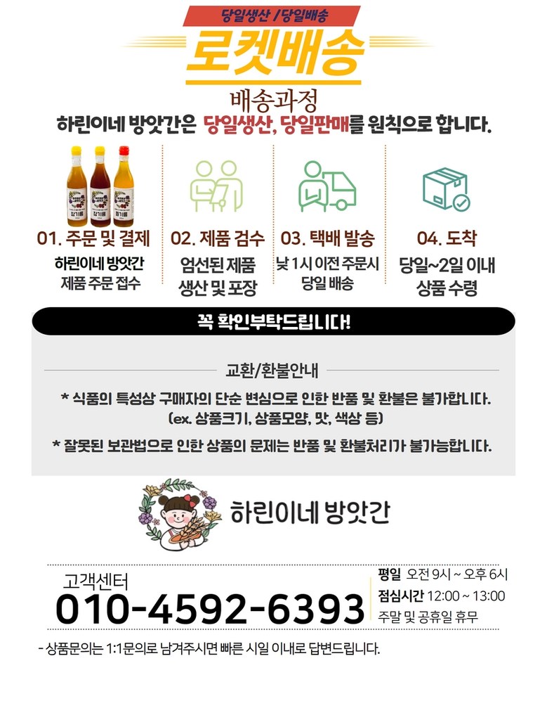 - ㆍ모니터 해상도의 차이로 인해 색상이나 이미지가 실제와 달라, 고객이 단순 변심으로 교환/반품을 무료로 요청하는 경우