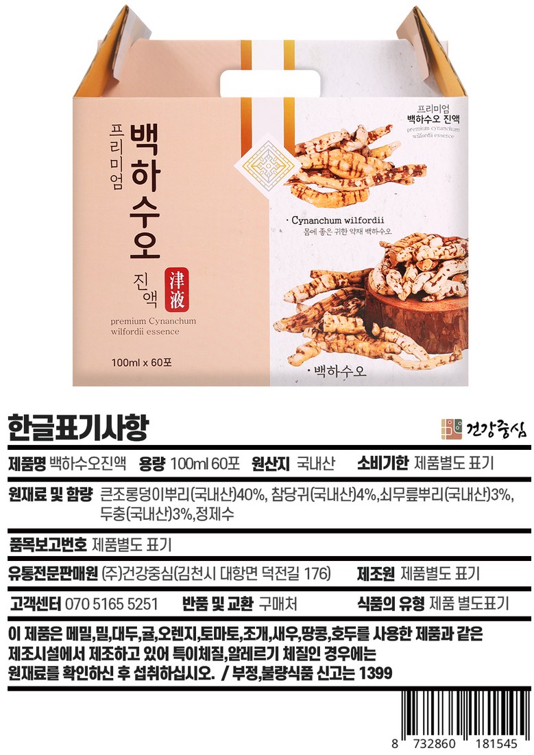 | 제품명 | 백하수오 진액 | 식품의 유형 | 상품 상세페이지 참조 |