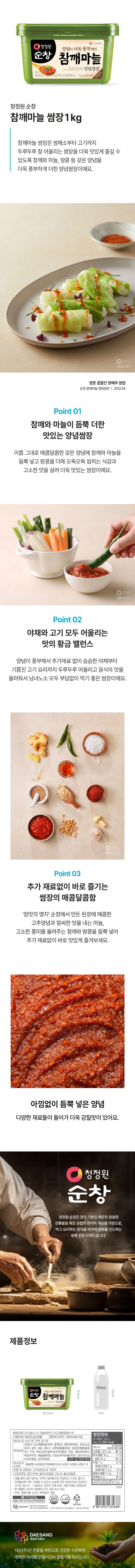 | 제품명 | 청정원 순창 참깨마늘 양념쌈장 | 식품의 유형 | 컨텐츠 참조 |