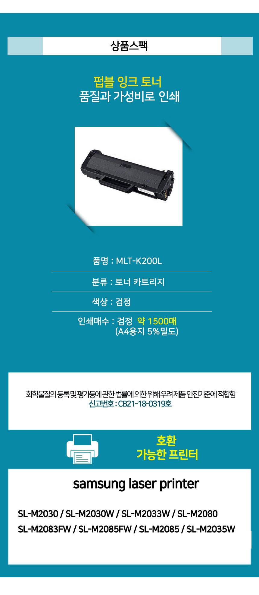 - 호환기종: SL-M2030, SL-M2030W, SL-M2033W, SL-M2080, SL-M2083FW, SL-M2085FW, SL-M2085, SL-M2035W
