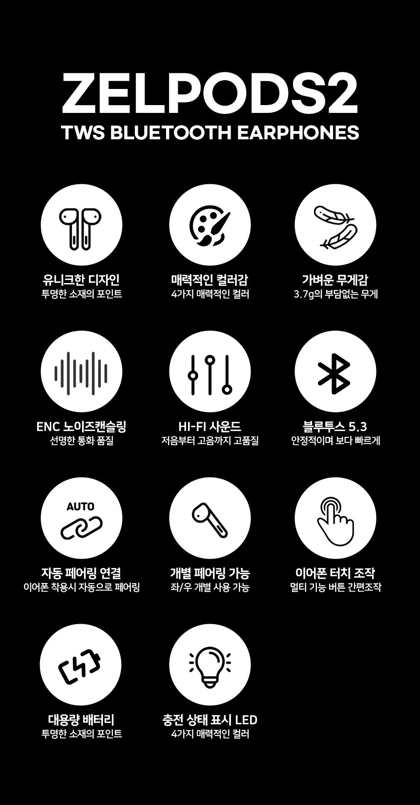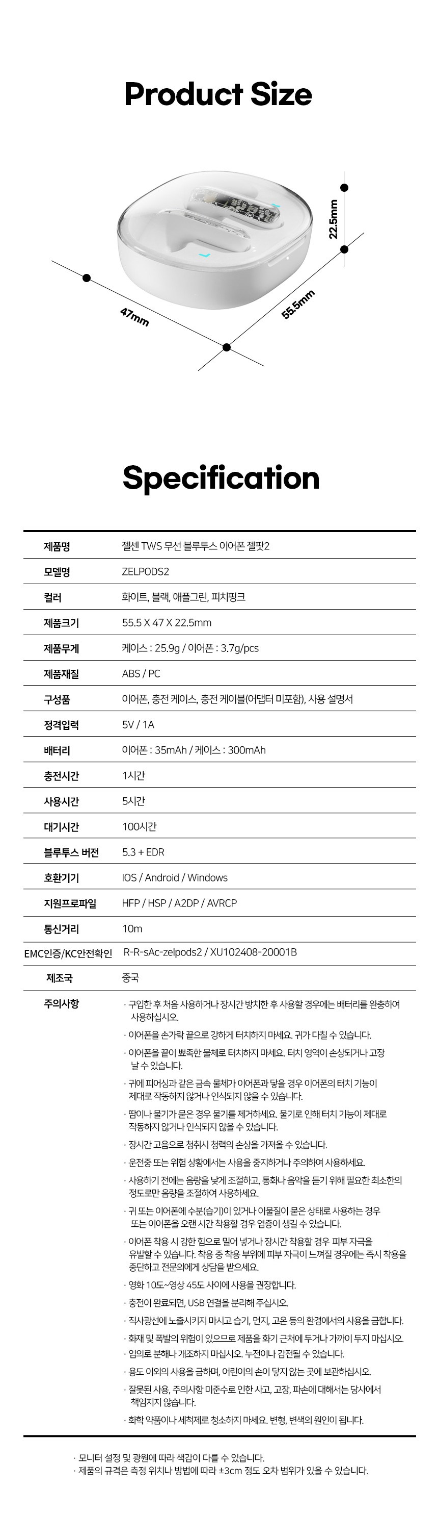 | 품명 및 모델명 | 블루투스이어폰 젤팟2, zelpods2 | KC 인증정보 | 본품: R-R-sAc-zelpods2, 전지: XU102408-20001B |
