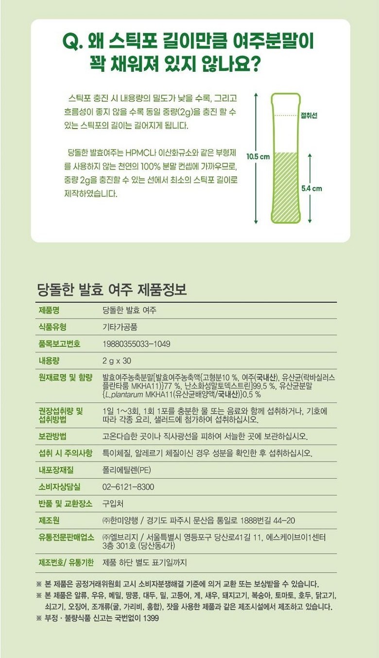 | 생산자 및 소재지 | 상품 상세페이지 참조 | 제조연월일, 소비기한 또는 품질유지기한 | 상품 상세페이지 참조 |