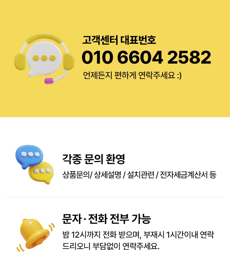 | 소비자상담 및 교환반품 문의 | 쿠팡고객센터 1577-7011 배송 및 환불/교환에 대한 문의는 마이쿠팡-고객센터 내 상담하기를 이용해주세요. | ||