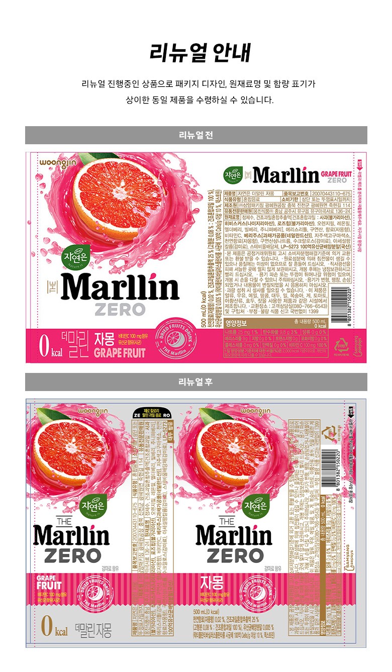 | 포장단위별 내용물의 용량(중량), 수량 | 500ml *20개 ,1개 | 원재료명 및 함량 | 컨텐츠 참조 |