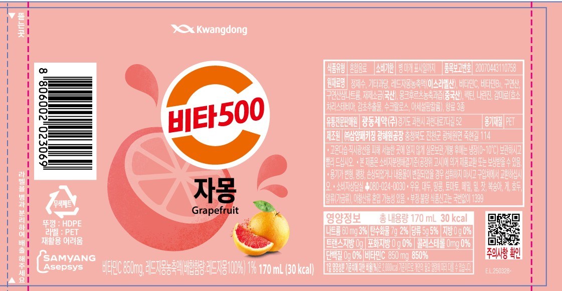 | 제품명 | 비타500 자몽 | 식품의 유형 | 컨텐츠 참조 |