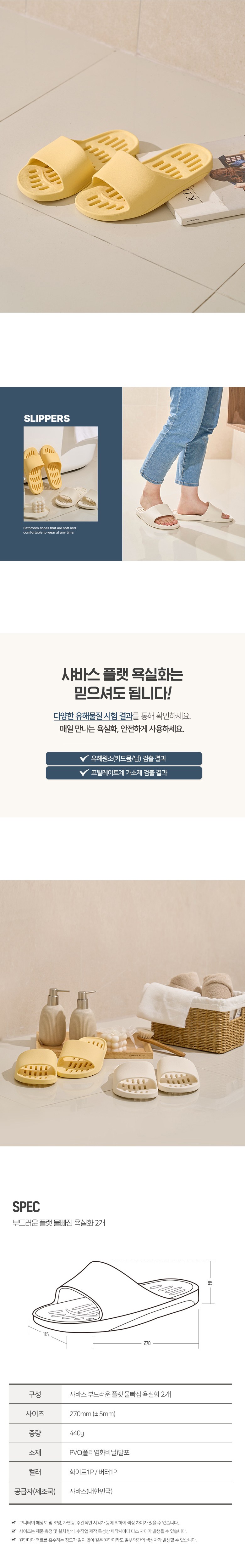 | 품명 및 모델명 | 샤바스 부드러운 플랫 물빠짐 욕실화 | 인증/허가 사항 | 해당없음 |