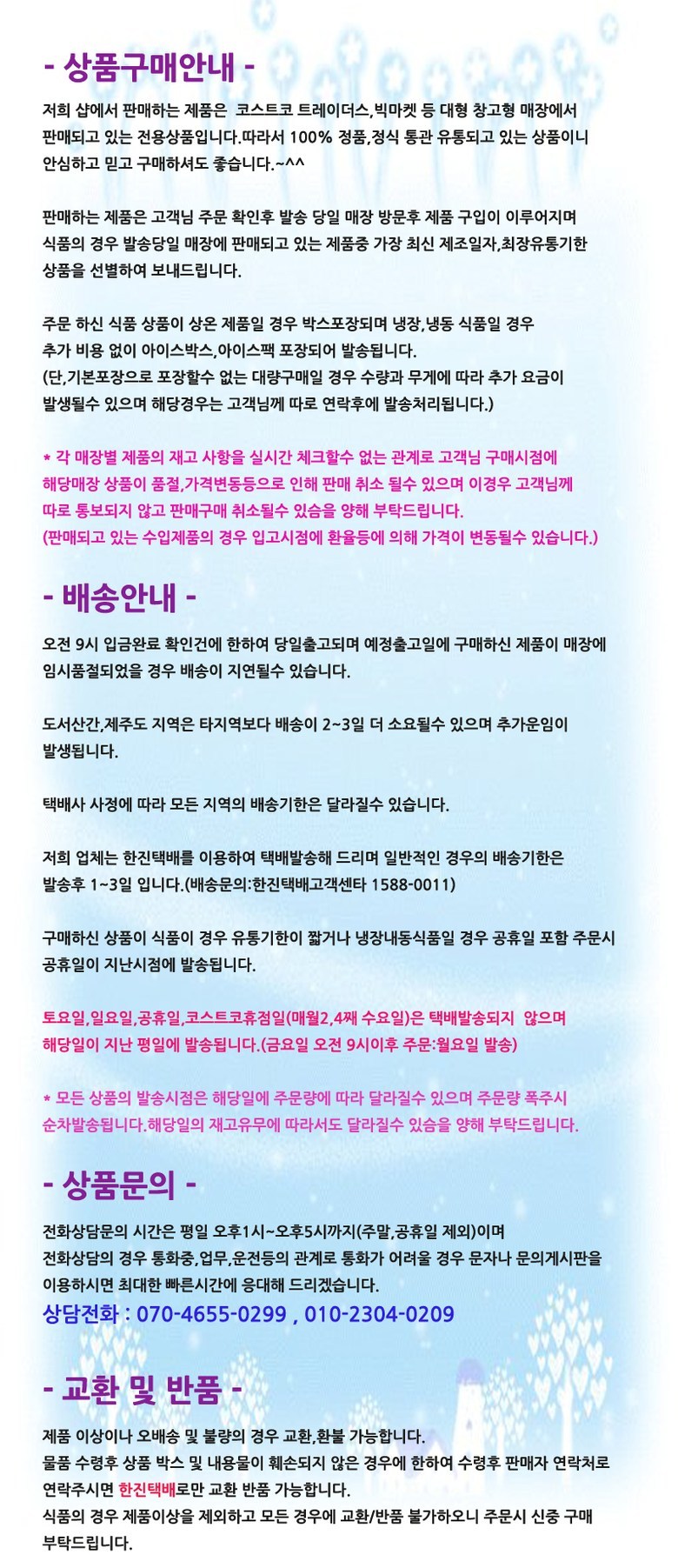 | 제품명 | 상품 상세페이지 참조 | 식품의 유형 | 상품 상세페이지 참조 |