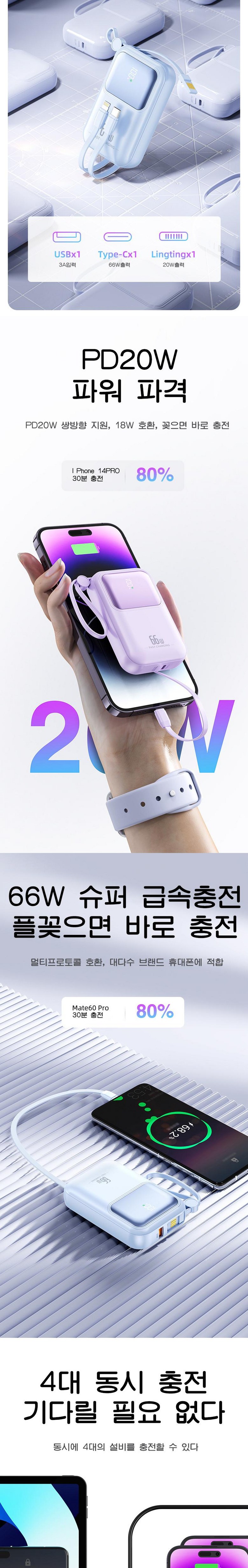 | 품명 및 모델명 | PYHO 20000mAh 보조배터리 | KC 인증정보 | YU10903-21005/R-R-Uny-C05 |