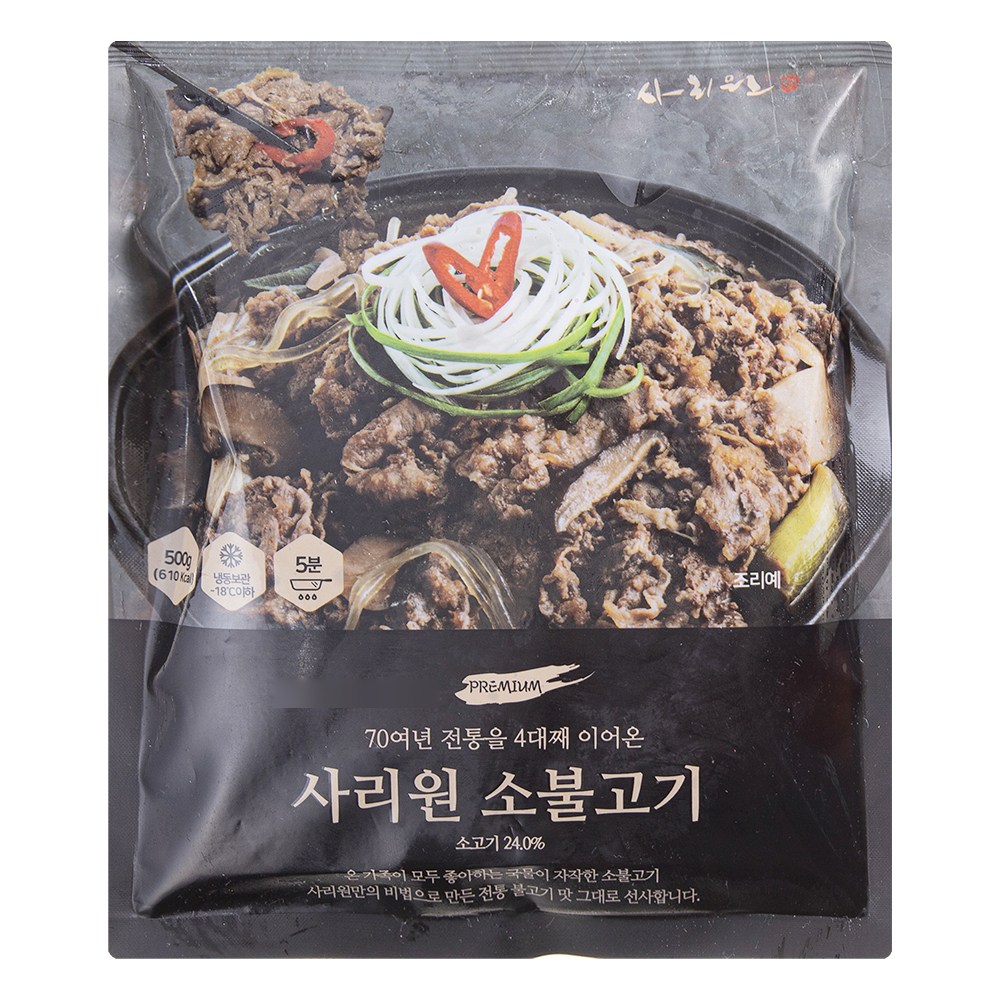 사리원의 소불고기를 가정에서 즐겨보세요. 프라이팬이나 전자레인지로 조리할 수 있어 간편하답니다. 쫄깃한 소고기에 달콤 짭조름한 감칠맛이 쏙쏙 배어 입맛을 사로잡지요. 여기에 당면, 새송이버섯 등 다채로운 재료가 더해져, 소불고기 하나만으로도 식탁이 풍성해질 거예요.