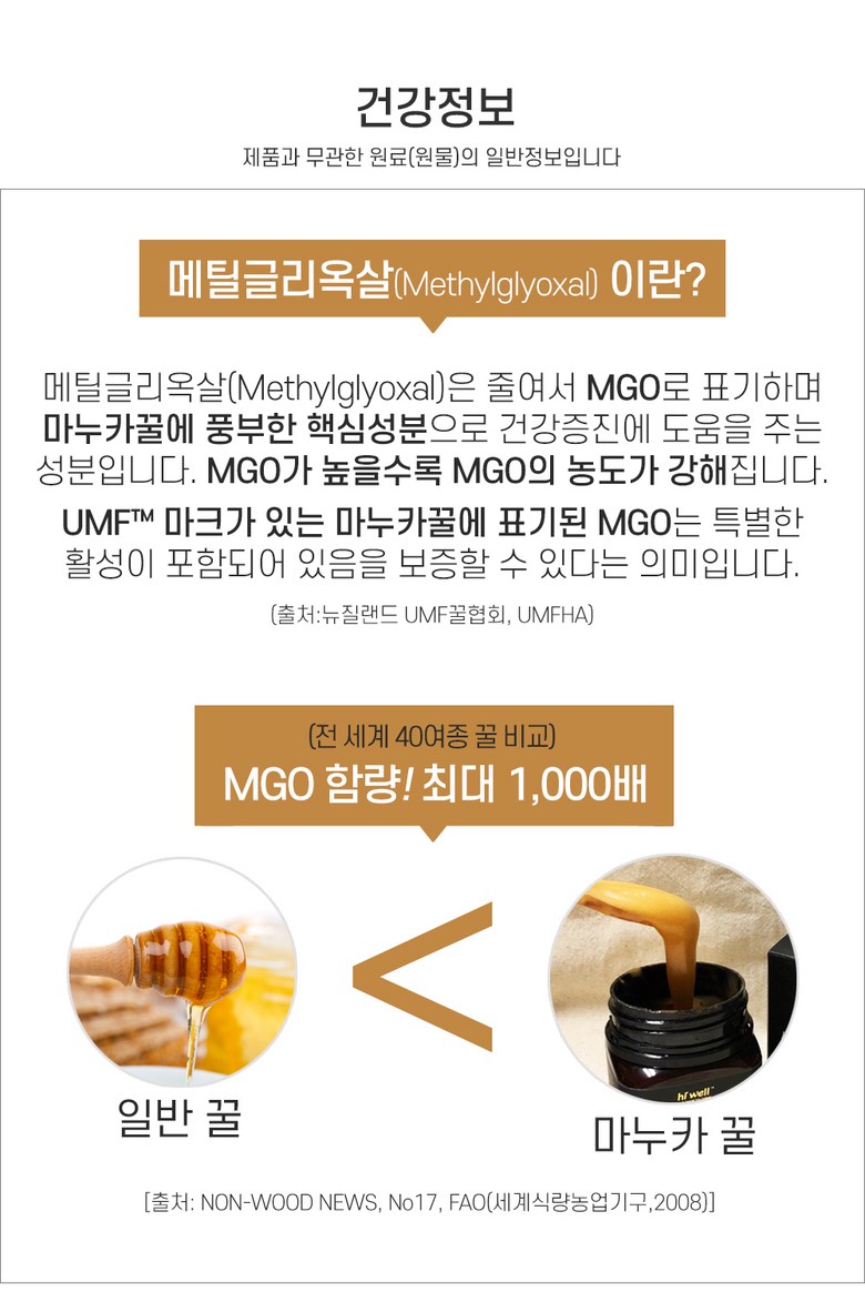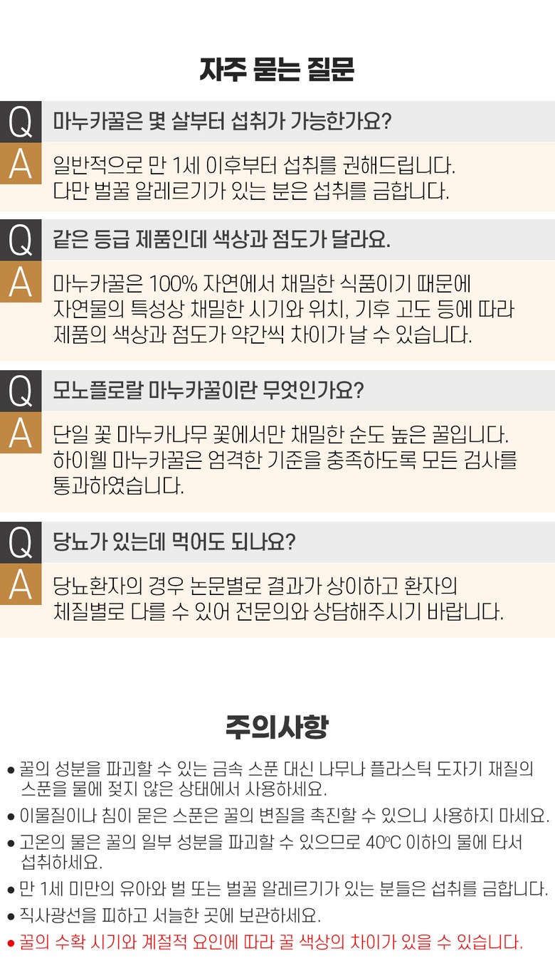 | 포장단위별 내용물의 용량(중량), 수량 | 상품 상세페이지 참조 | 원재료명 및 함량 | 마누카꿀 100% |