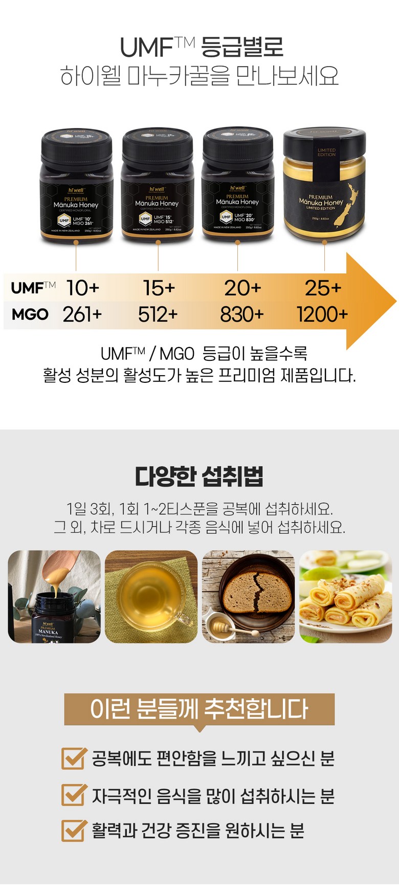 | 제품명 | 하이웰 프리미엄 마누카꿀 | 식품의 유형 | 벌꿀(주밀원:마누카꿀) |