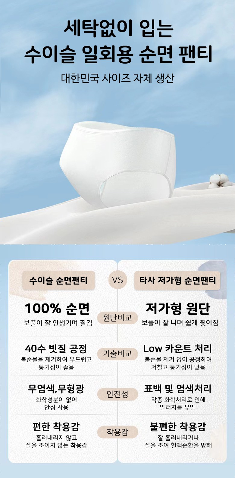 | 종류 | 수이슬 여성 일회용팬티 | 소재 | 상품 상세페이지 참조 |