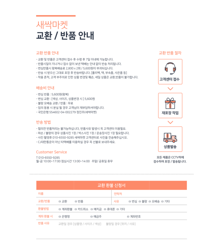 - ㆍ모니터 해상도의 차이로 인해 색상이나 이미지가 실제와 달라, 고객이 단순 변심으로 교환/반품을 무료로 요청하는 경우