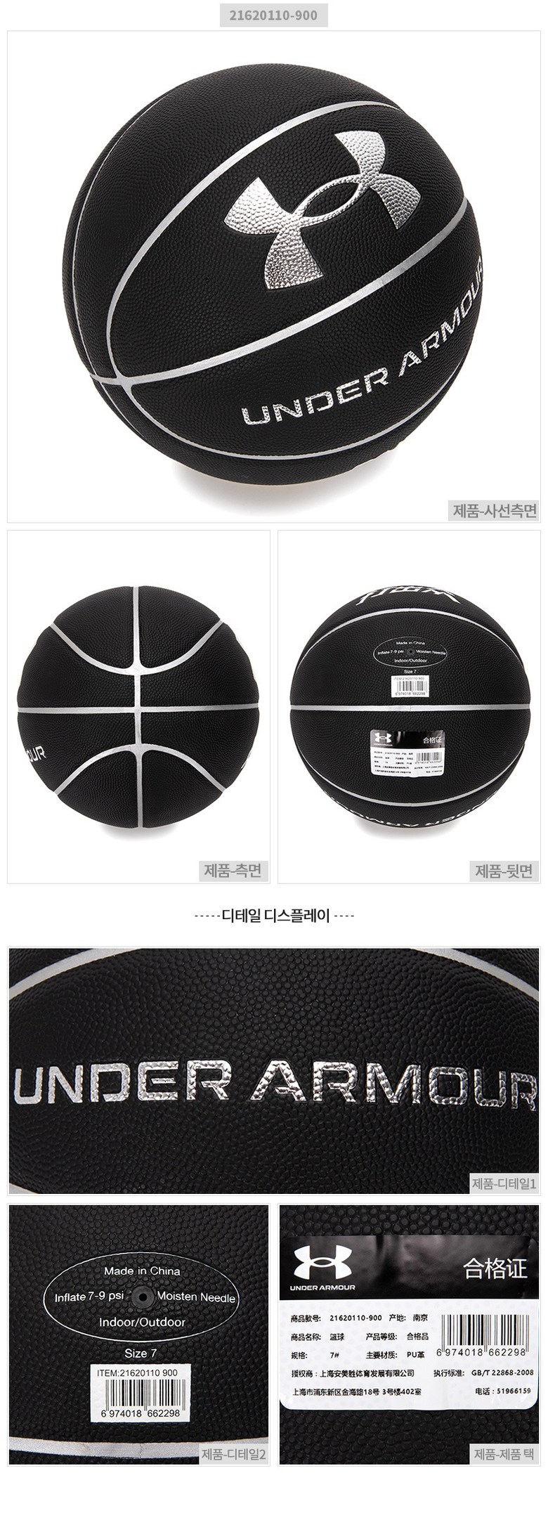 언더아머 PU 가죽 실내외 미끄럼 방지 내마모 농구공 블랙