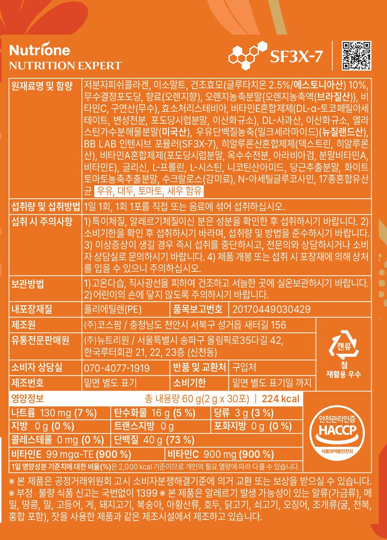 | 제품명 | 글루타치온 콜라겐 W | 식품의 유형 | 기타가공품 |