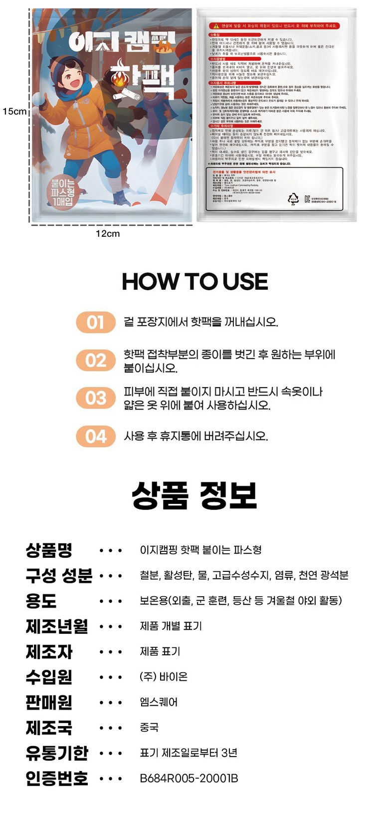 | 품명 및 모델명 | 상품 상세페이지 참조 | 인증/허가 사항 | 상품 상세페이지 참조 |