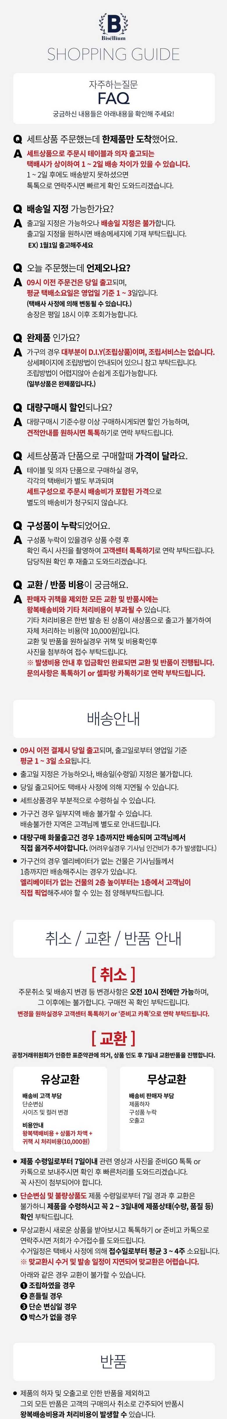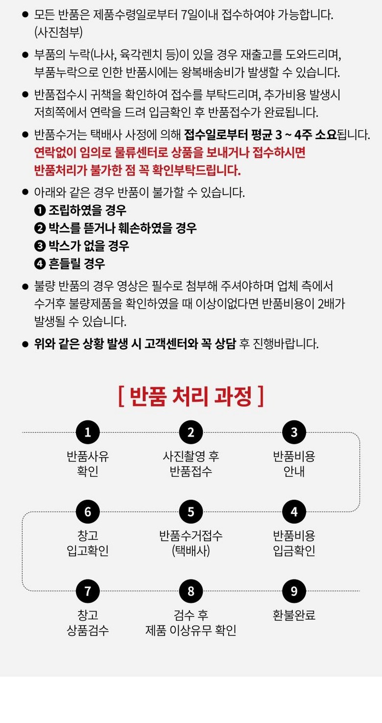 - ㆍ교환/반품에 관한 일반적인 사항은 판매자가 제시사항보다 관계법령이 우선합니다.