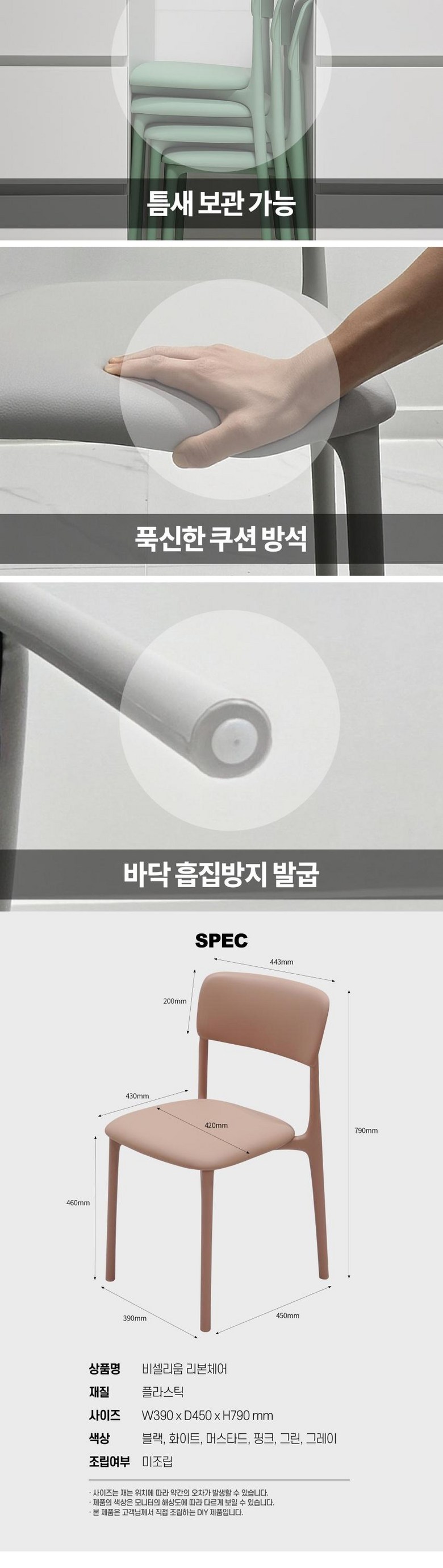 | 품명 | 감각적인 디자인 인테리어 비셀리움 리본 체어 4컬러 민트 핑크 화이트 연그레이 홈 오피스 카페의자 | KC 인증정보 | 상품 상세페이지 참조 |