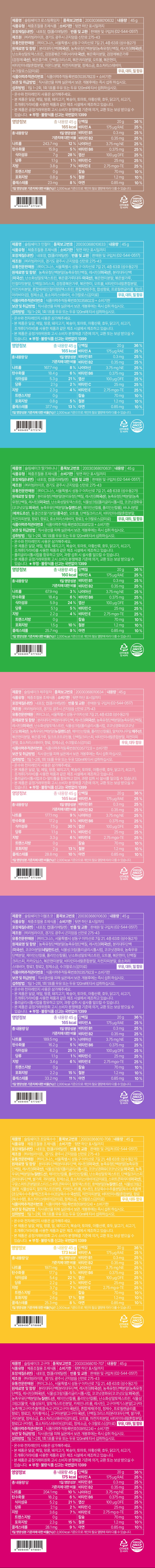 | 포장단위별 내용물의 용량(중량), 수량 | 45g x 14개 | 원재료명 및 함량 | 컨텐츠 참조 |