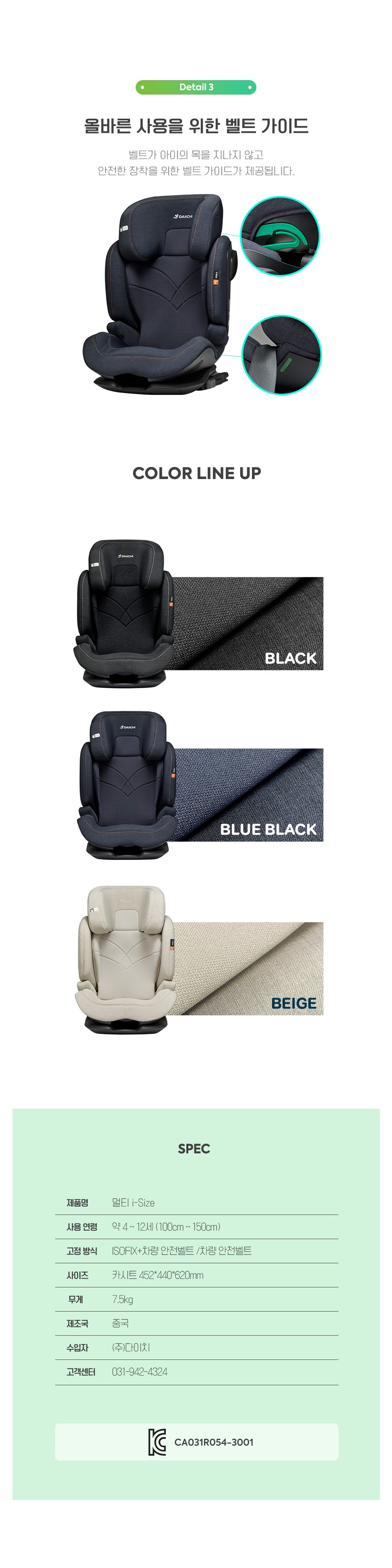 | 품명 및 모델명 | 다이치 멀티 i Size 주니어 카시트 | KC 인증정보 | CA031R054-3001 |