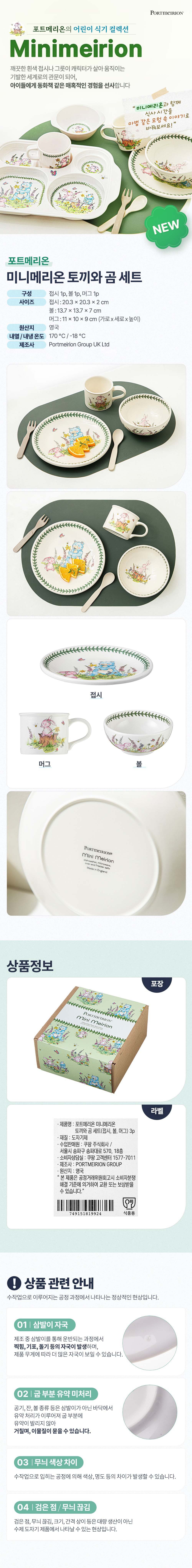 | 품명 및 모델명 | 포트메리온 미니메리온 토끼와 곰 세트 3p | 재질 | 컨텐츠 참조 |