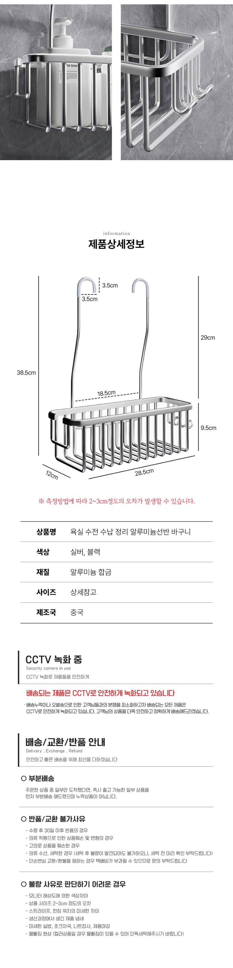 - ㆍ모니터 해상도의 차이로 인해 색상이나 이미지가 실제와 달라, 고객이 단순 변심으로 교환/반품을 무료로 요청하는 경우