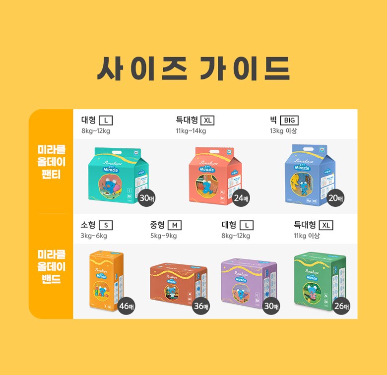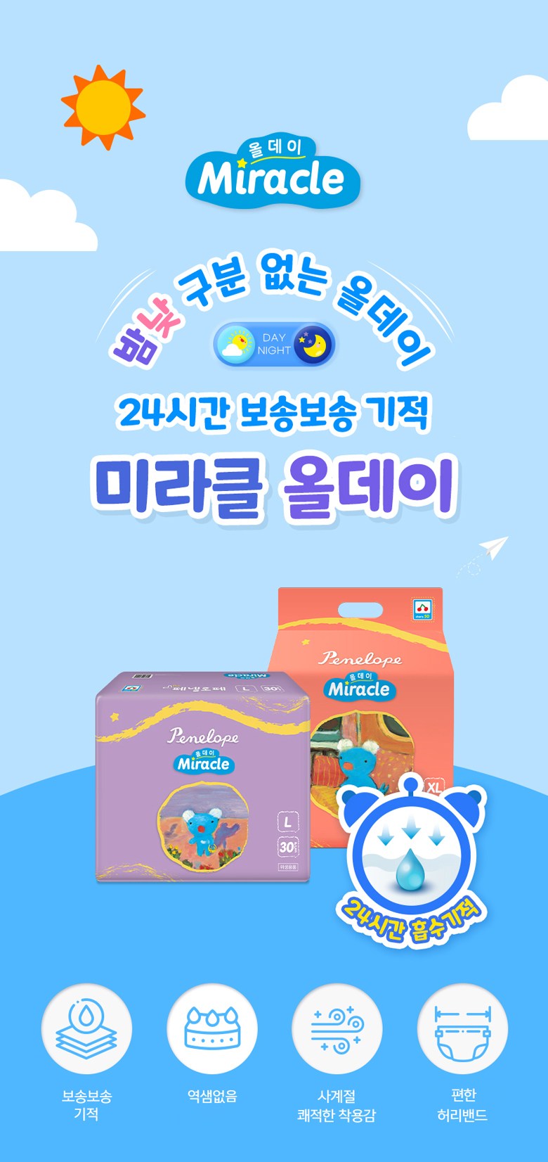 | 품명 및 모델명 | 페넬로페 미라클 올데이 팬티 기저귀(남여공용) | KC 인증정보 | 위생용품 |