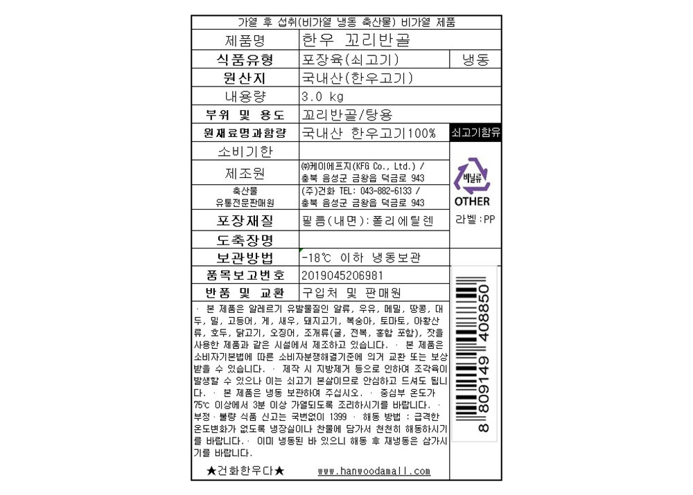 | 품목 또는 명칭 | 컨텐츠 참조 | 포장단위별 내용물의 용량(중량),수량,크기 | 3kg x 3개 |