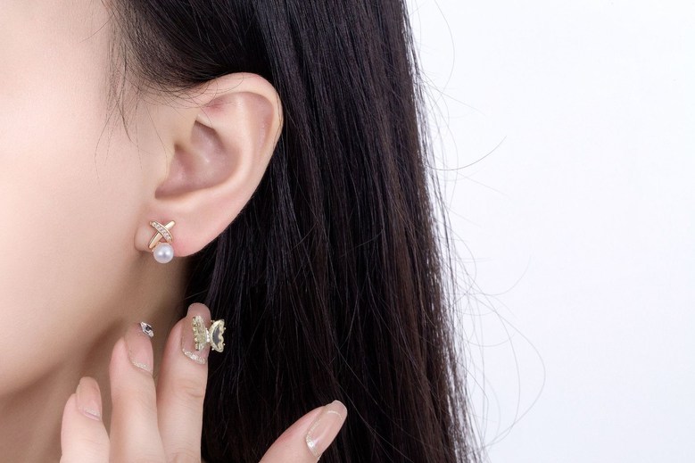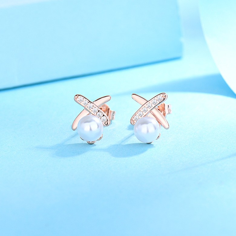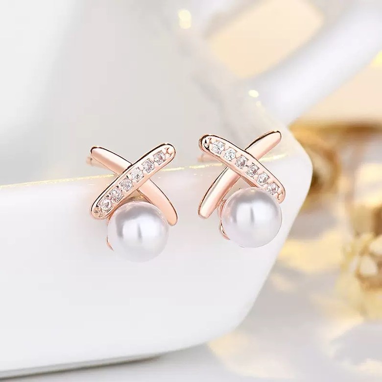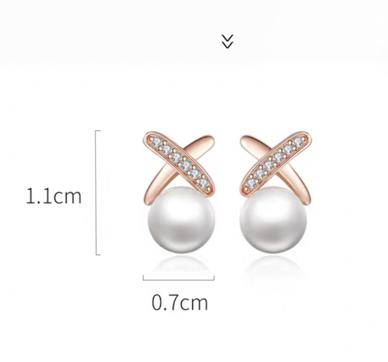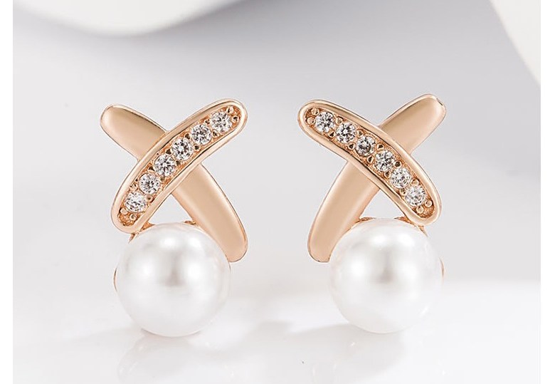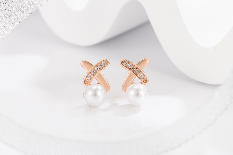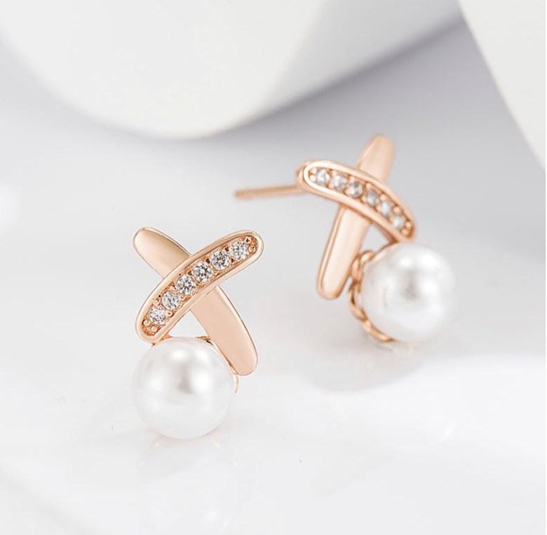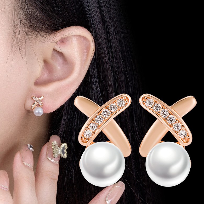 QUEENLAND 로즈 골드 도금 진주 인조 다이아몬드 귀걸이
