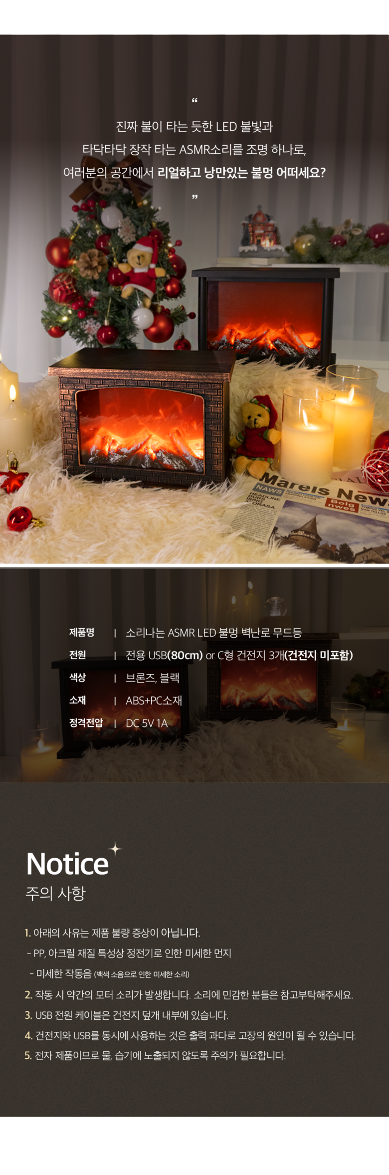 - 전원공급방식: 전기코드/USB