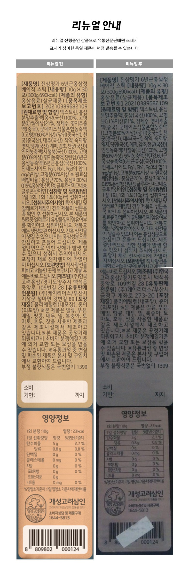 - 첨가물: 홍삼
