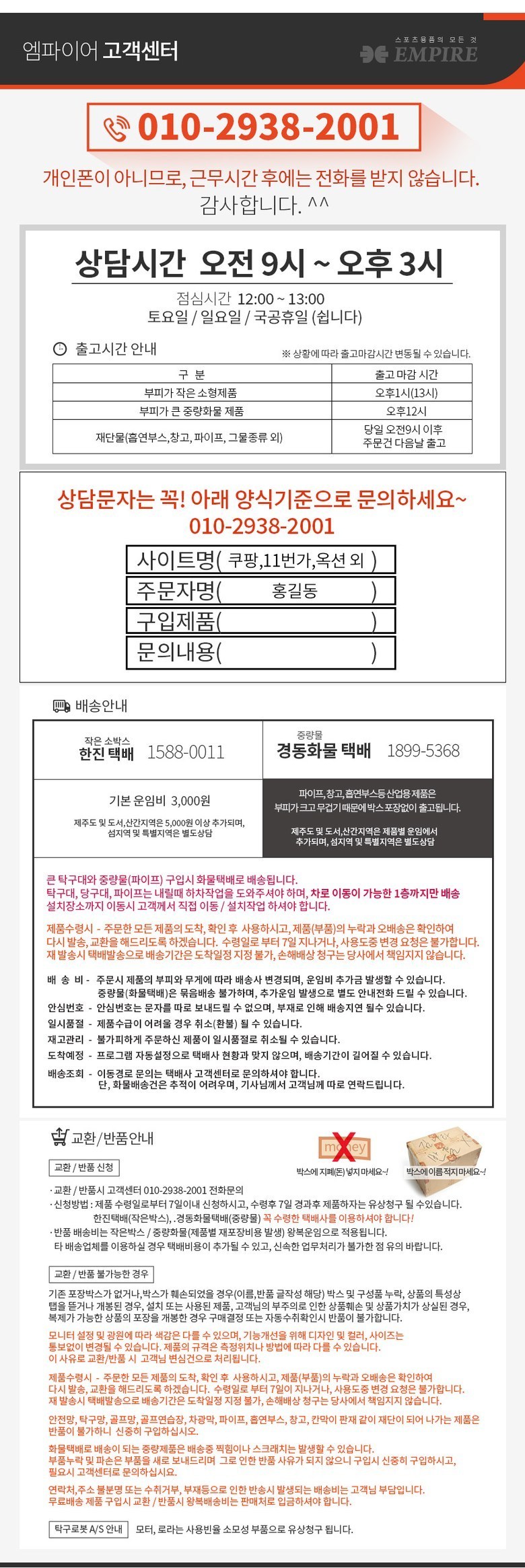 | 소비자상담 관련 전화번호 | 010-2938-2001 | ||