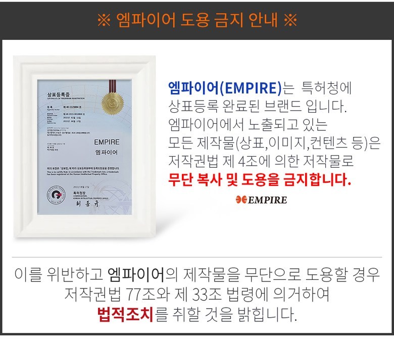 | 제조국(원산지) | 중국 | 제조자(수입자) | 엠파이어 |