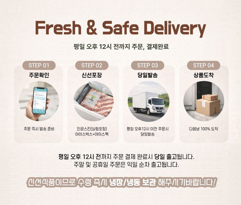 | 배송방법 | 신선/냉장/냉동 | 배송비 | 무료배송 - 도서산간 지역 배송불가 |