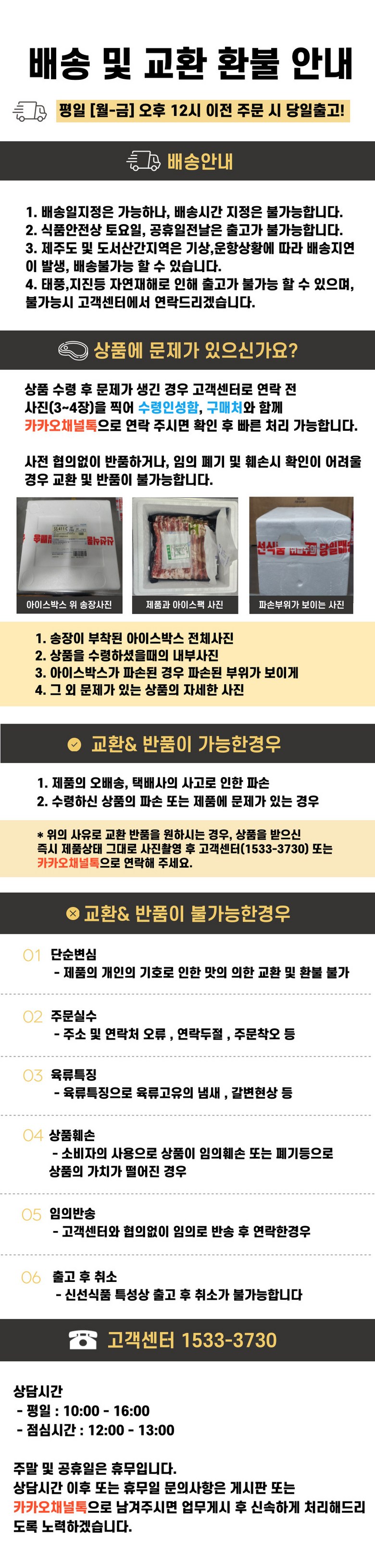 - ㆍ교환/반품에 관한 일반적인 사항은 판매자가 제시사항보다 관계법령이 우선합니다.