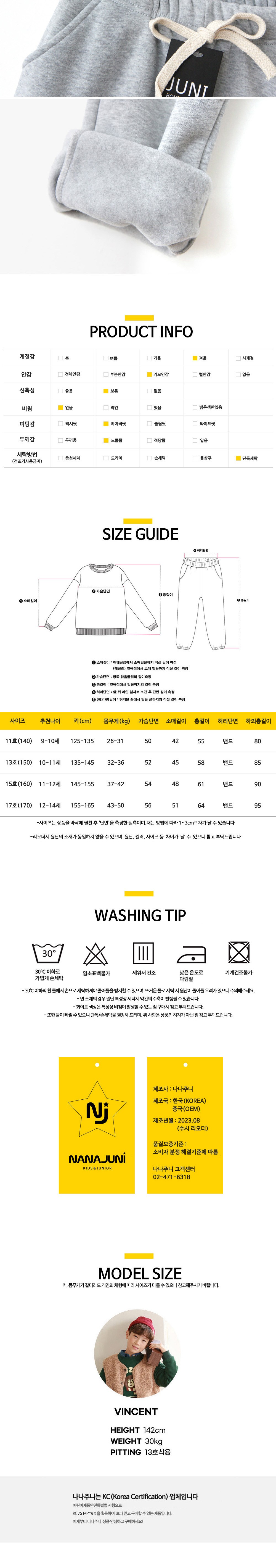 - 하의 밴딩 유무: 밴딩(고무줄) 있음
