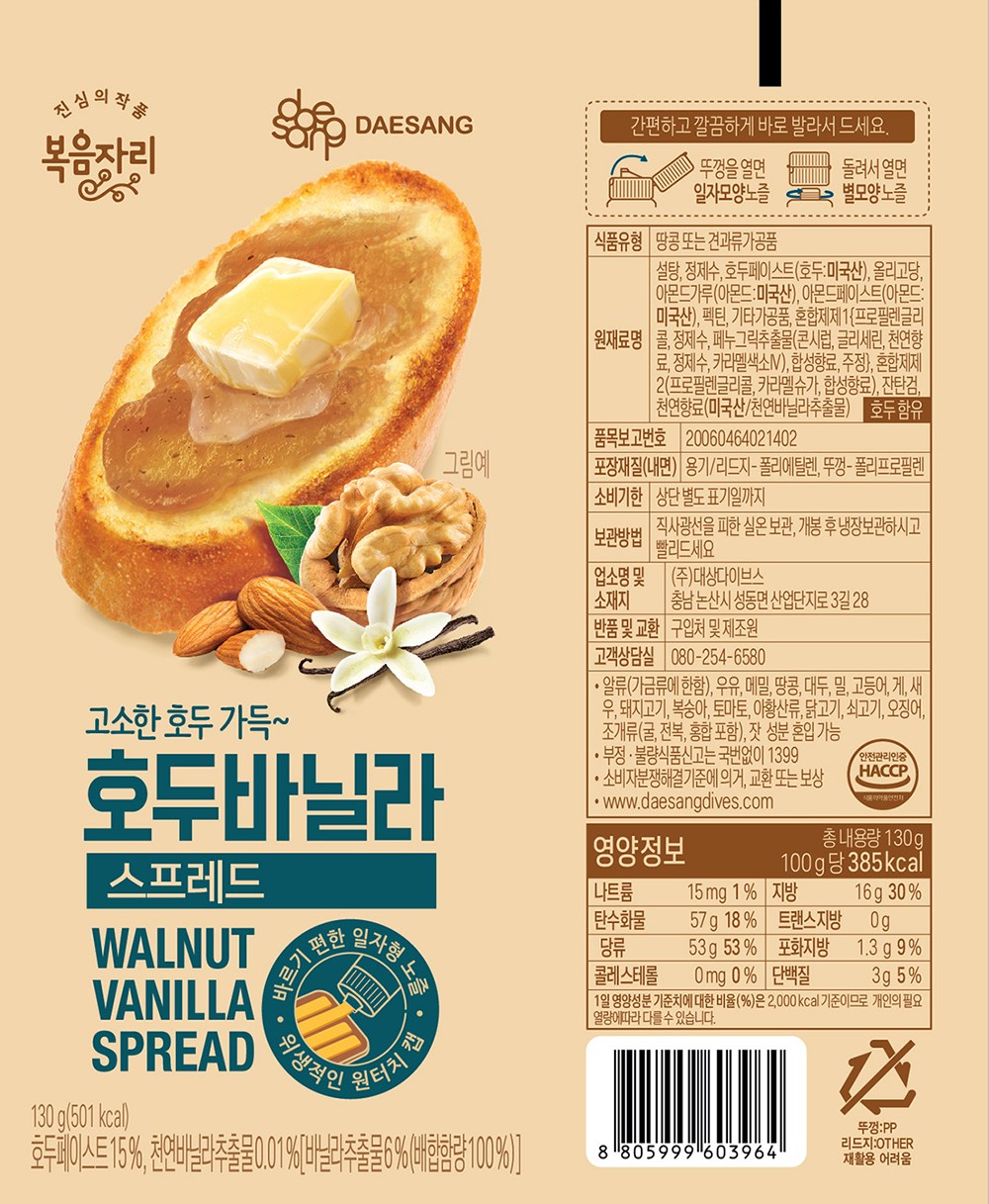| 제품명 | 호두바닐라 스프레드 | 식품의 유형 | 컨텐츠 참조 |