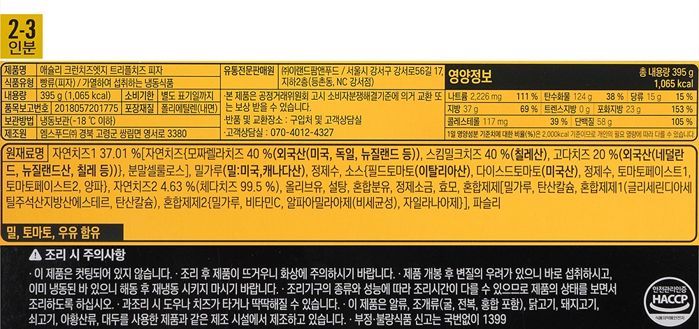 | 포장단위별 내용물의 용량(중량), 수량 | 395g x 3개,1개 | 원재료명 및 함량 | 컨텐츠 참조 |
