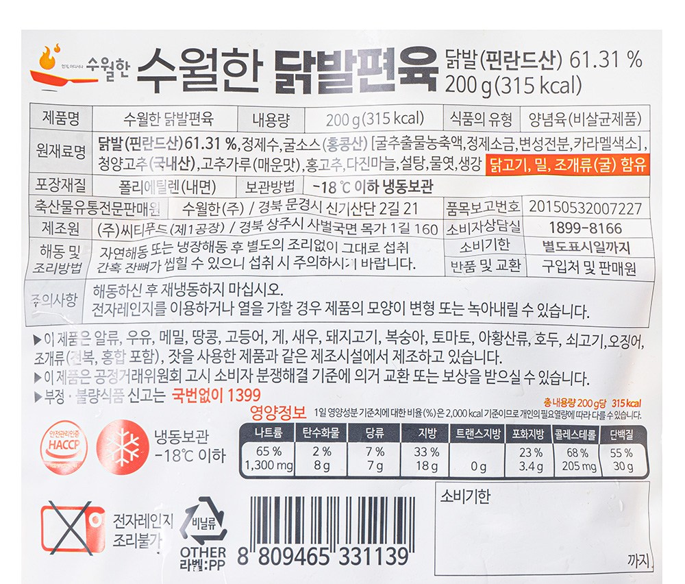 | 포장단위별 내용물의 용량(중량), 수량 | 200g x 3개 | 원재료명 및 함량 | 컨텐츠 참조 |