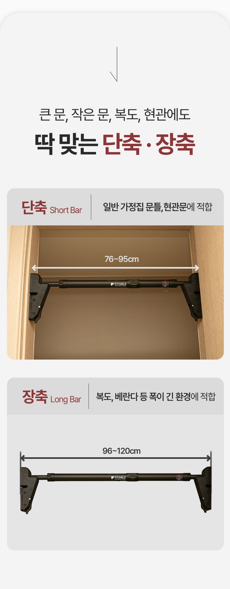 본 제품은 단축(76~95cm), 장축(96~120cm) 두 가지 버전이 있습니다.