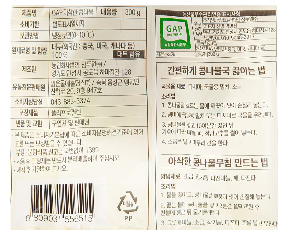 통통한 몸집을 뽐내는 콩나물이에요. 아삭아삭한 식감과 시원한 감칠맛으로 입맛을 사로잡지요. 뜨끈한 국에 넣어도 좋고, 조물조물 무쳐 먹어도 맛있답니다. 다채롭게 요리해 식탁 위를 풍성하게 채워보세요.
